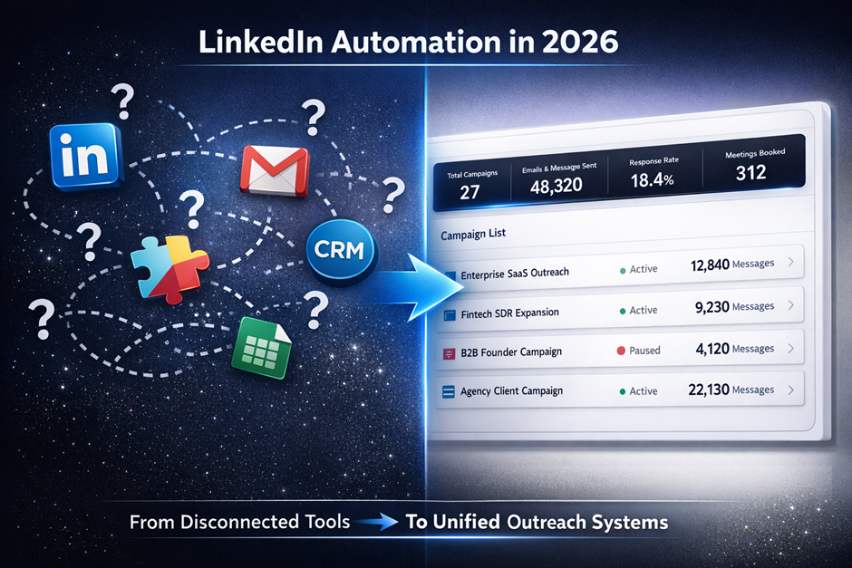 LinkedIn outreach in 2026 is no longer about sending bulk messages. Learn how modern AI-powered tools combine personalization, multi-channel automation, and unified CRM systems to generate predictable pipeline.