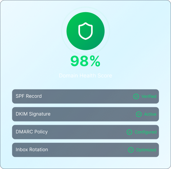 Validate SPF/DKIM/DMARC automatically, rotate inboxes intelligently, and add content variation to keep your domain healthy — helping cold email outreach land in the primary inbox, not spam.