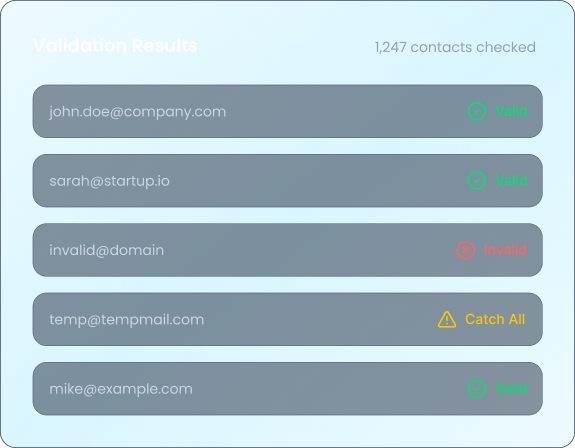 Validate contacts with MX/SMTP checks, disposable email detection, and risk scoring to cut bounces and keep inbox placement strong.